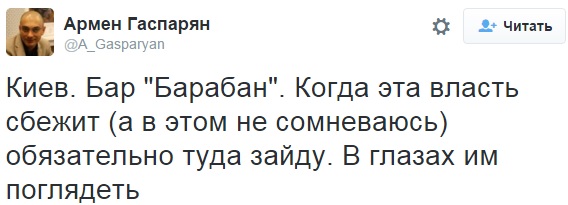 Сам владелец бара Геннадий Канищенко говорит, что ранее объявление ни у кого не вызывало столько бурной реакции, весь скандал из-за россиянки, которая недавно посетила “Барабан”. Истерию в соцсетях, в основном, развивают именно жители России, что подтверждает переписка на странице Гаспаряна.