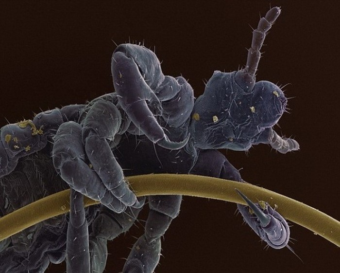 Людська воша на волосині